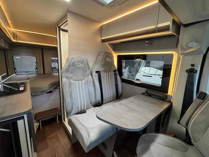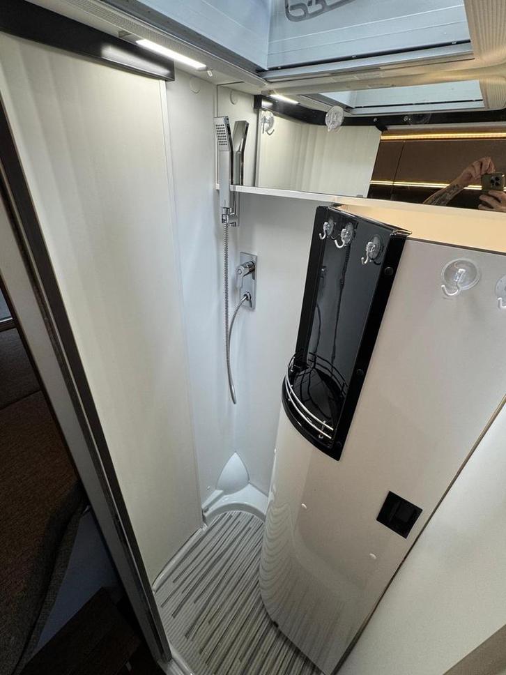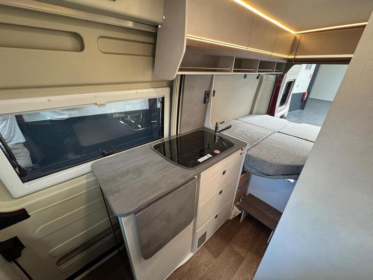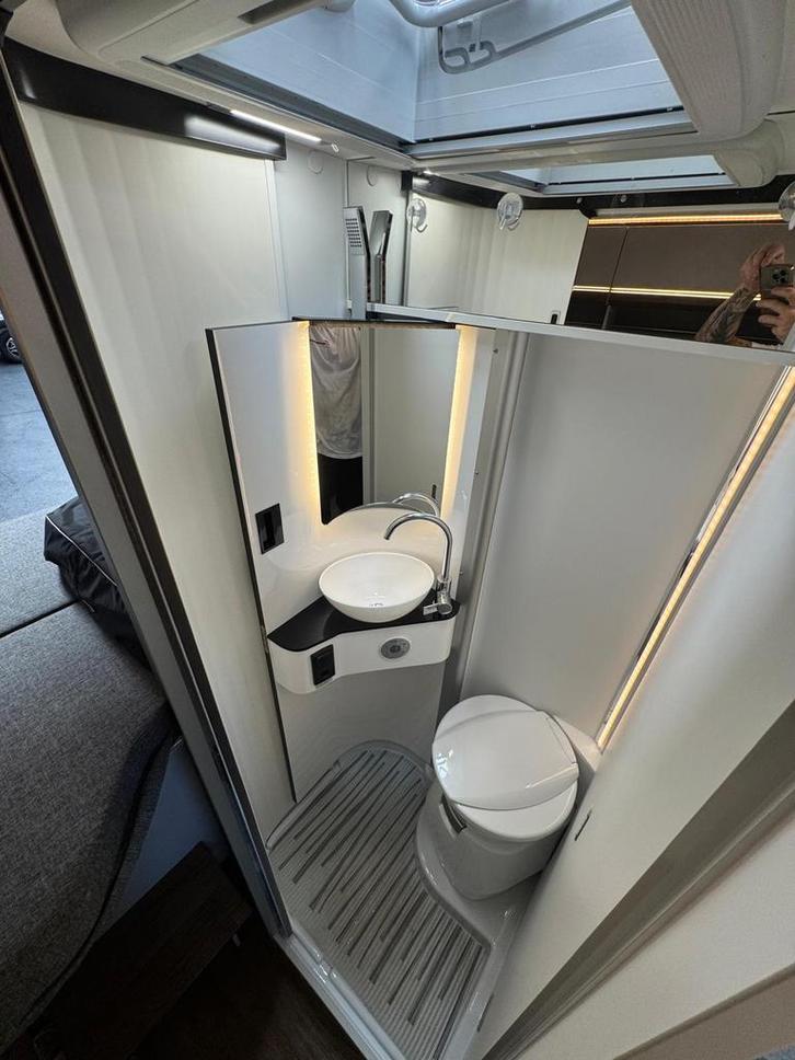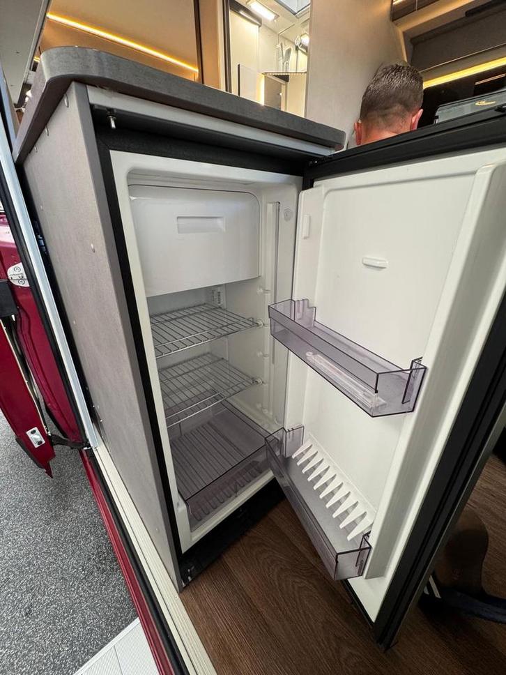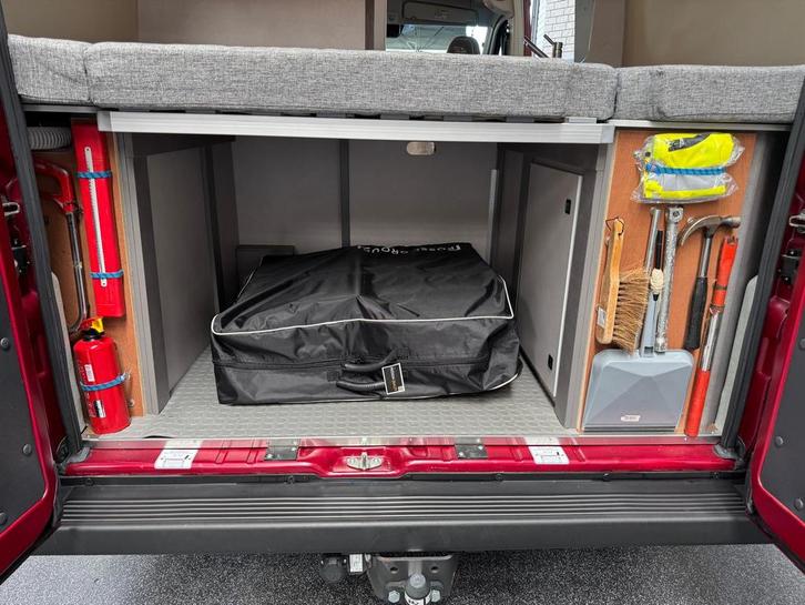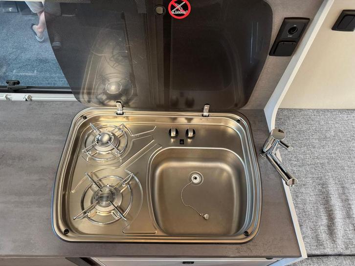 2 pits gasfornuisDwarsbed (2 personen)Eethoek/ZithoekKoelkast met diepvriezerLavabo/DoucheOpbergruimte onder het bedPilootstoelenSpoelbakVaste WC