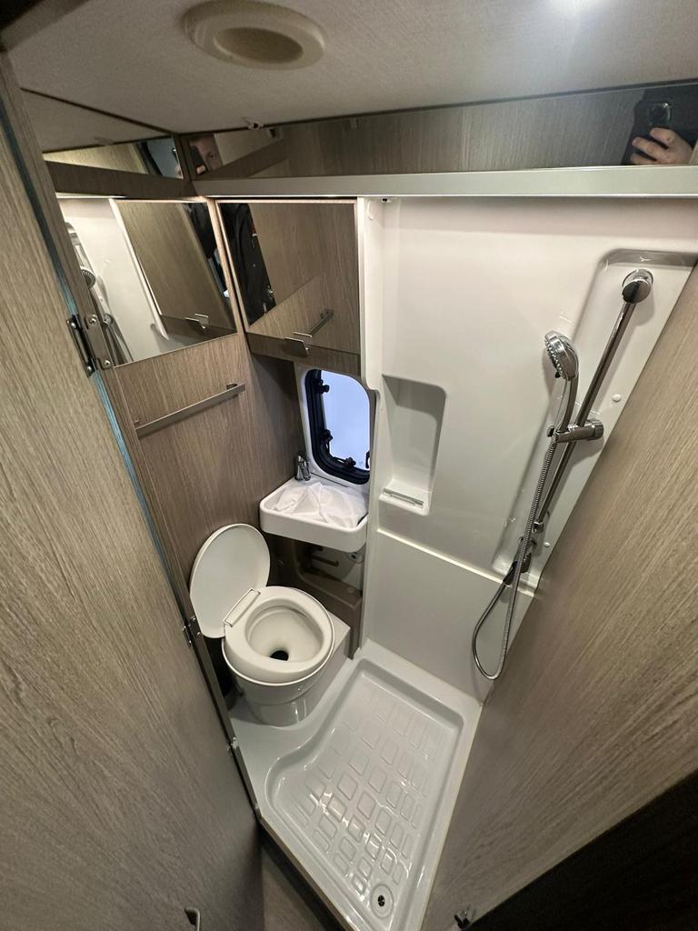 2 pits gasfornuisDwarsbed (2 personen)Eethoek/ZithoekKoelkast met diepvriezerLavaboOpbergruimte onder het bedPilootstoelenSpoelbakVaste WC