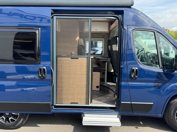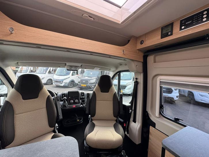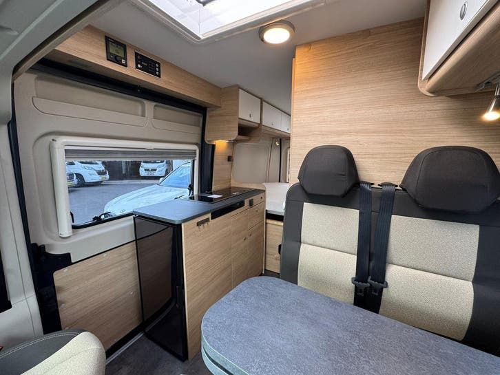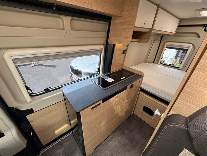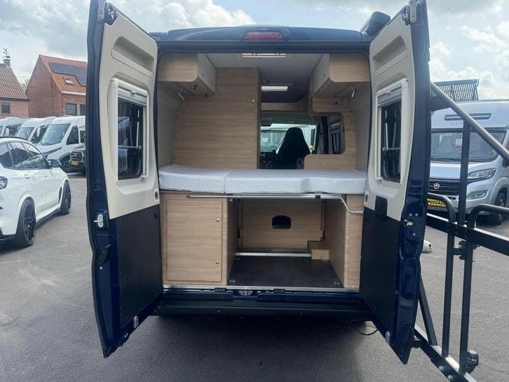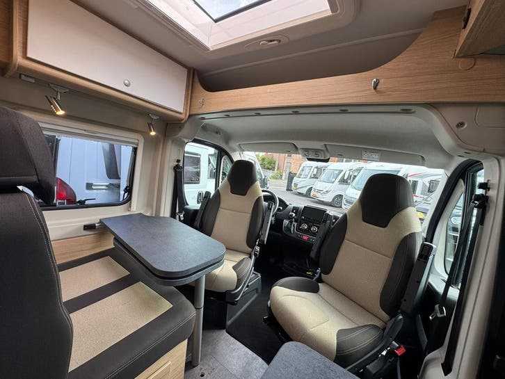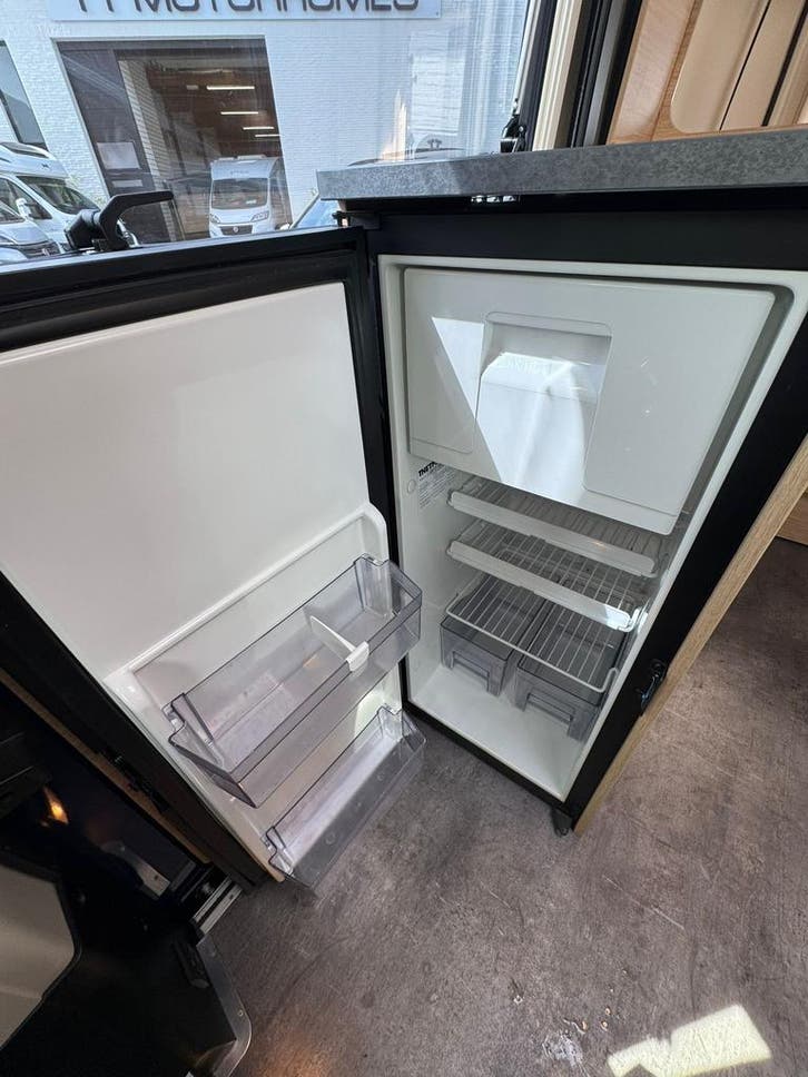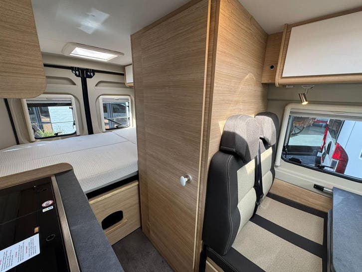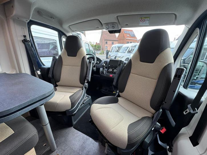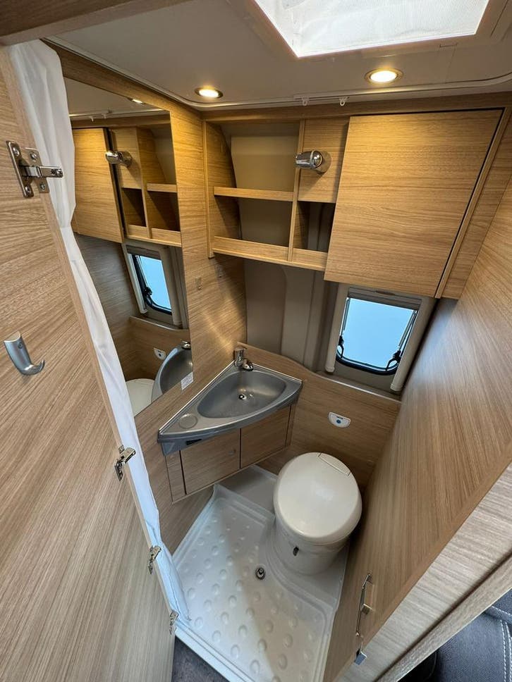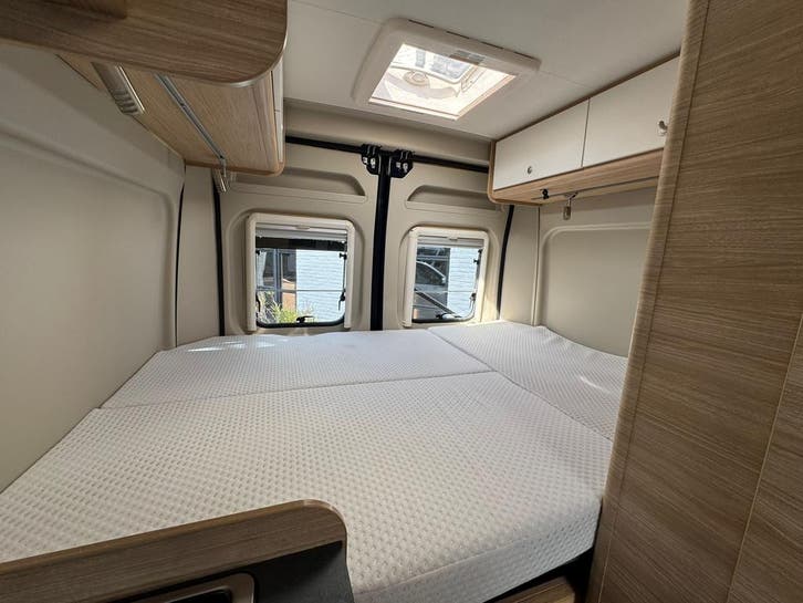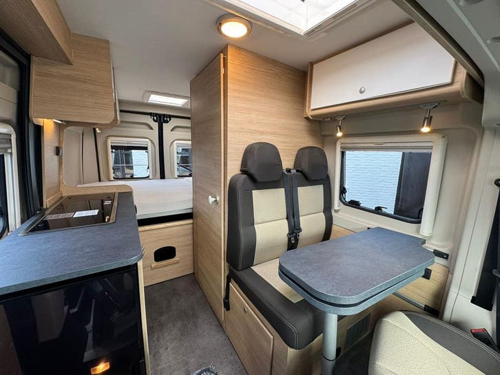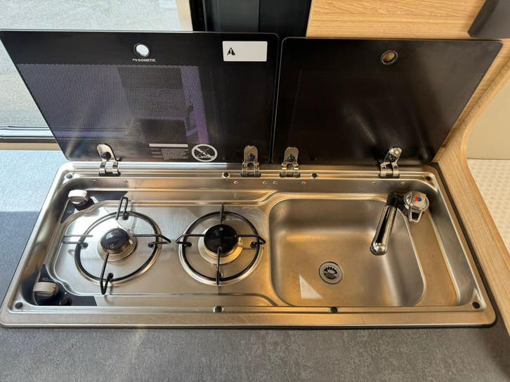 2 pits gasfornuisDwarsbed (2 personen)Eethoek/ZithoekKoelkast met diepvriezerLavabo/DoucheOpbergruimte onder het bedPilootstoelenSpoelbakVaste WC