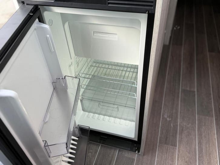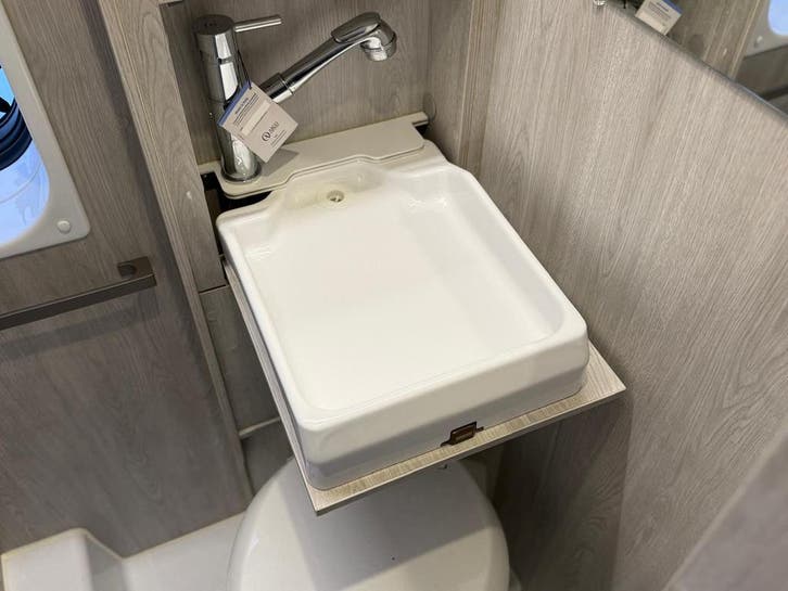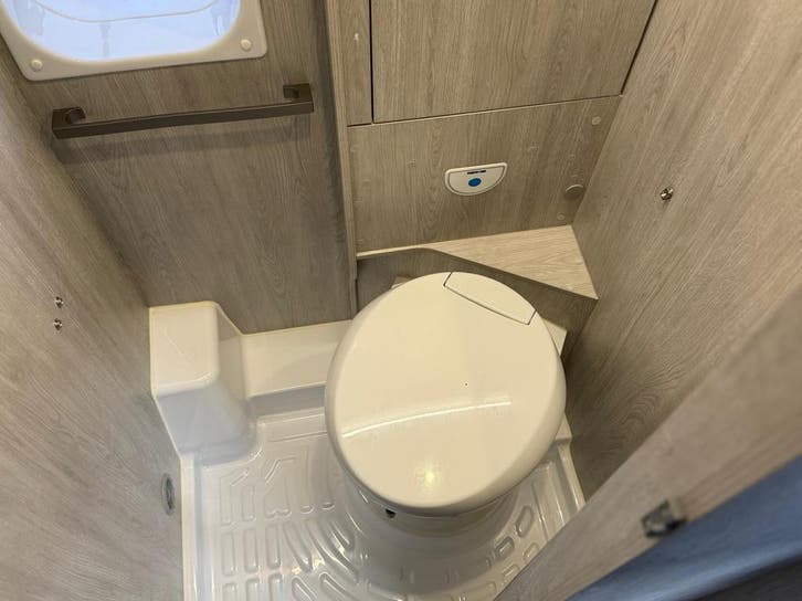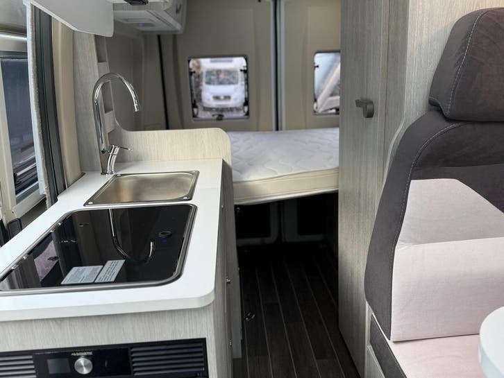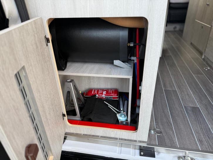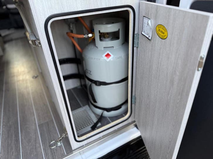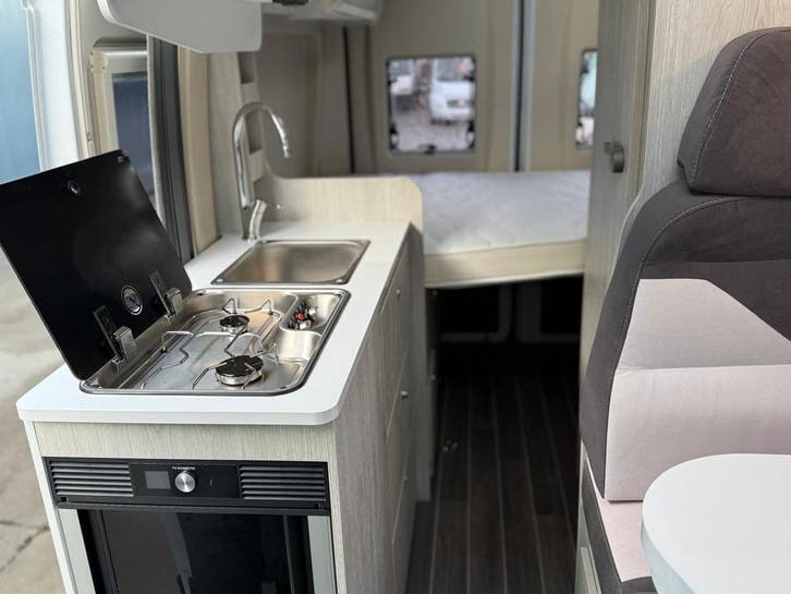 2 pits gasfornuisDwarsbed (2 personen)Eethoek/ZithoekKoelkast met diepvriezerLavabo/DoucheOpbergruimte onder het bedPilootstoelenSpoelbakVaste WC