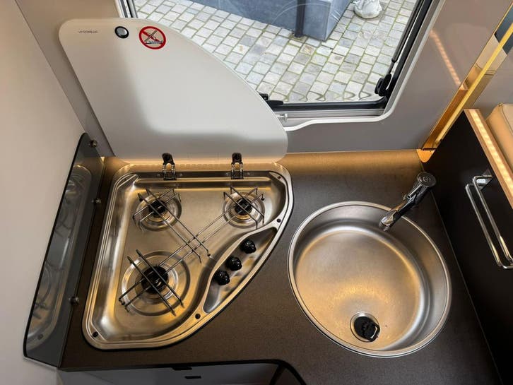 3 pits gasfornuis - Gootsteen - Koelkast met diepvriezer