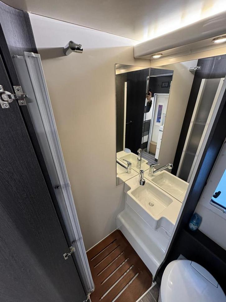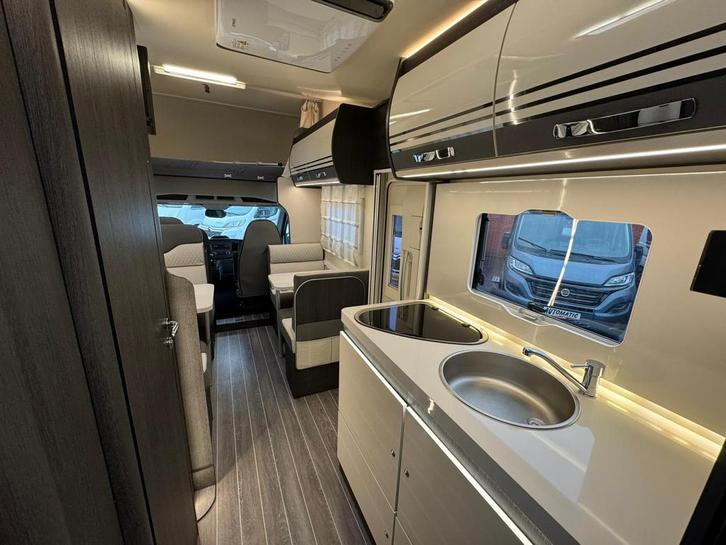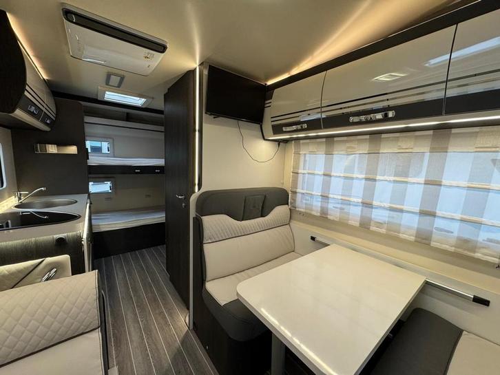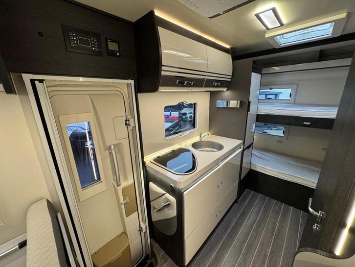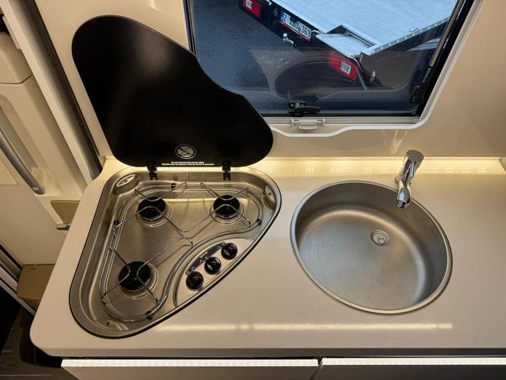 3 pits gasfornuisKoelkast met diepvriezerLavabo/DoucheRuime alkoof (2 personen)SpoelbakStapelbed (2 personen) of grote garageTreinzit (2 personen of 1 persoonsbed)Treinzit (4 personen of 2 persoonsbed)Vaste WC