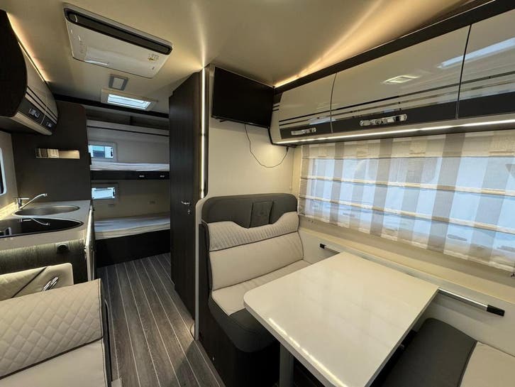 Lavabo/DoucheRuime alkoof (2 personen)SpoelbakStapelbed (2 personen) of grote garageTreinzit (2 personen of 1 persoonsbed)Treinzit (4 personen of 2 persoonsbed)Vaste WC