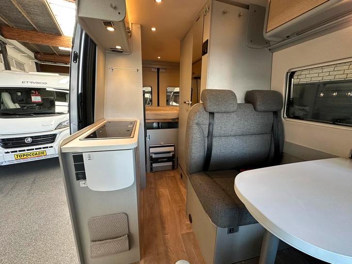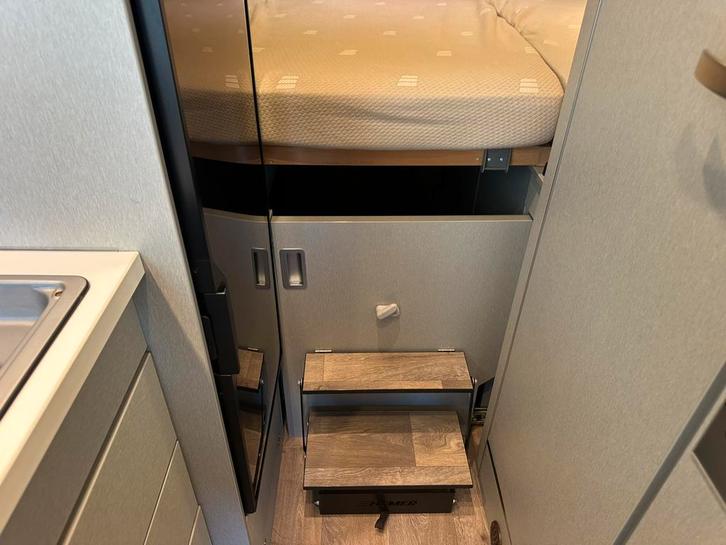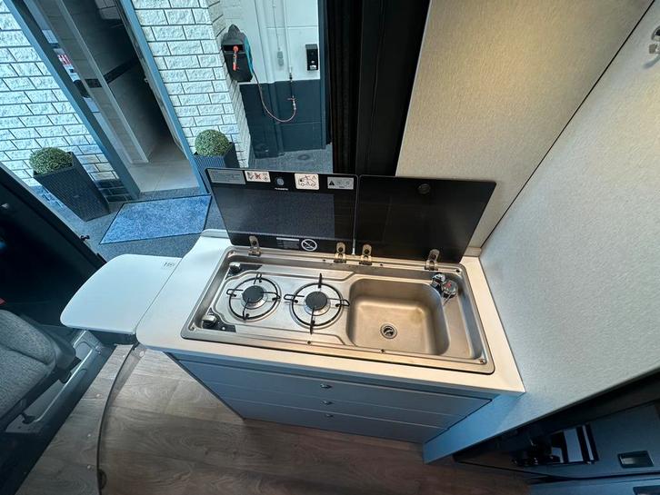 2 pits gasfornuisDwarsbed (2 personen)Eethoek/ZithoekKoelkast met diepvriezerLavabo/DoucheOpbergruimte onder het bedPilootstoelenPop-up Dak (2 persoons bed)SpoelbakVaste WC